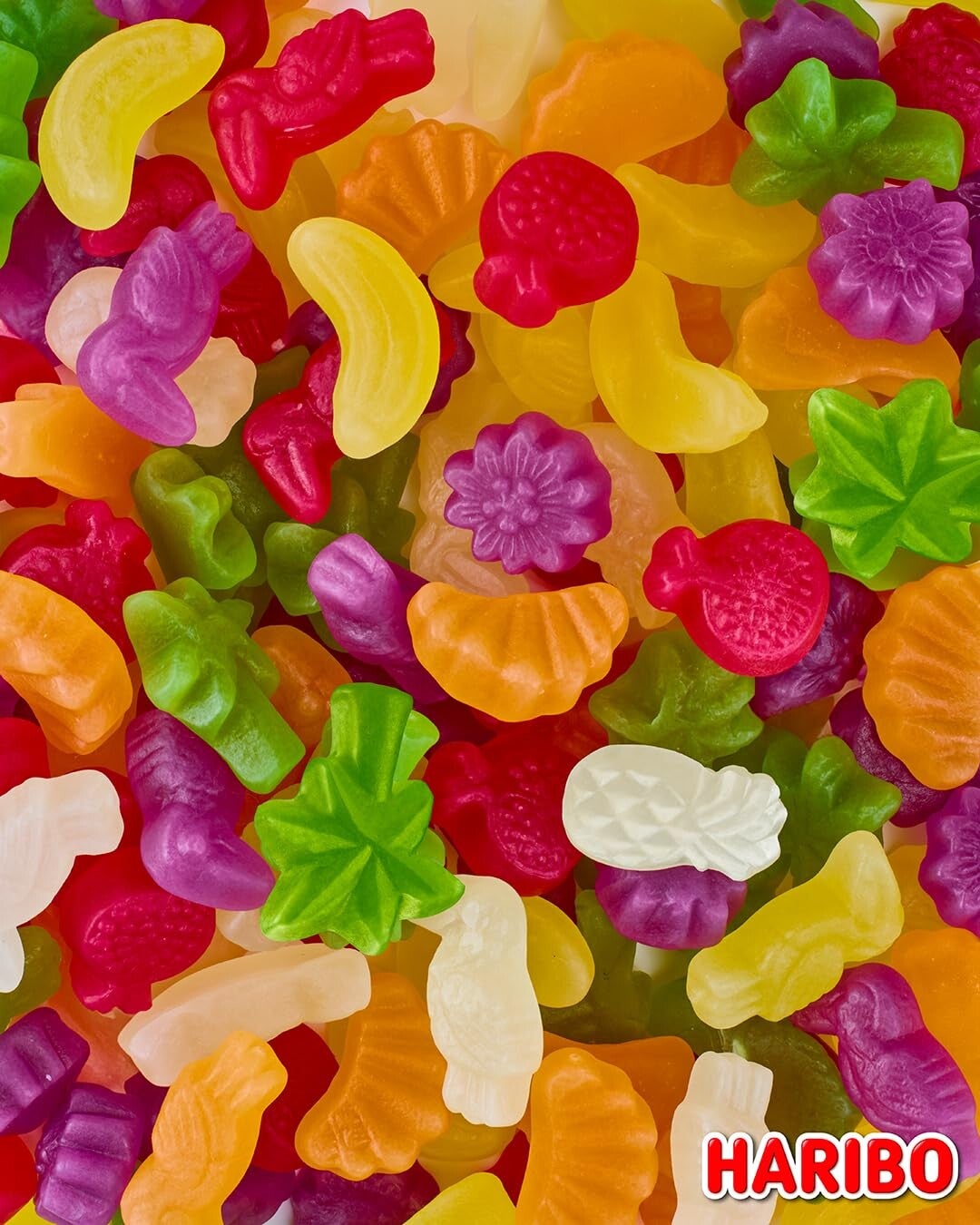 Coque ferme, noyau souple – la consistance incomparable rend Haribo Tropifrutti unique et a conquis de nombreux fans au fil des années. Le goût des fruits tropicaux exotiques laisse tranquilleLaissez le soleil entrer un instant – où que vous soyez. La pause parfaite du quotidien.