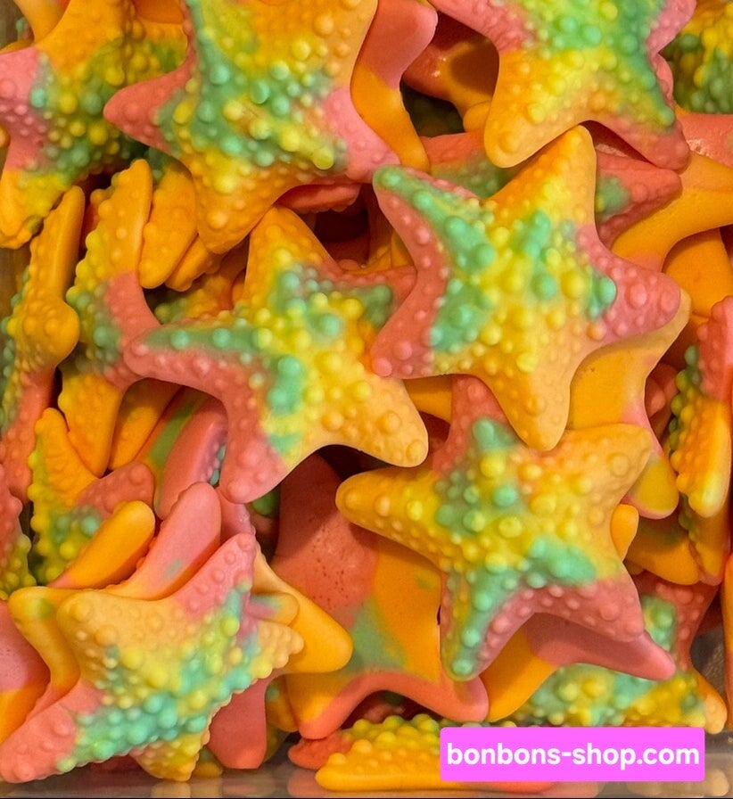 Les Trolli Étoile de Mer sont des bonbons gélifiés en forme d'étoiles de mer, avec des saveurs fruitées et une texture moelleuse. Leur apparence colorée et leur goût plaisant en font une friandise populaire pour les enfants et les adultes, idéale pour les moments de plaisir sucré ou les occasions festives