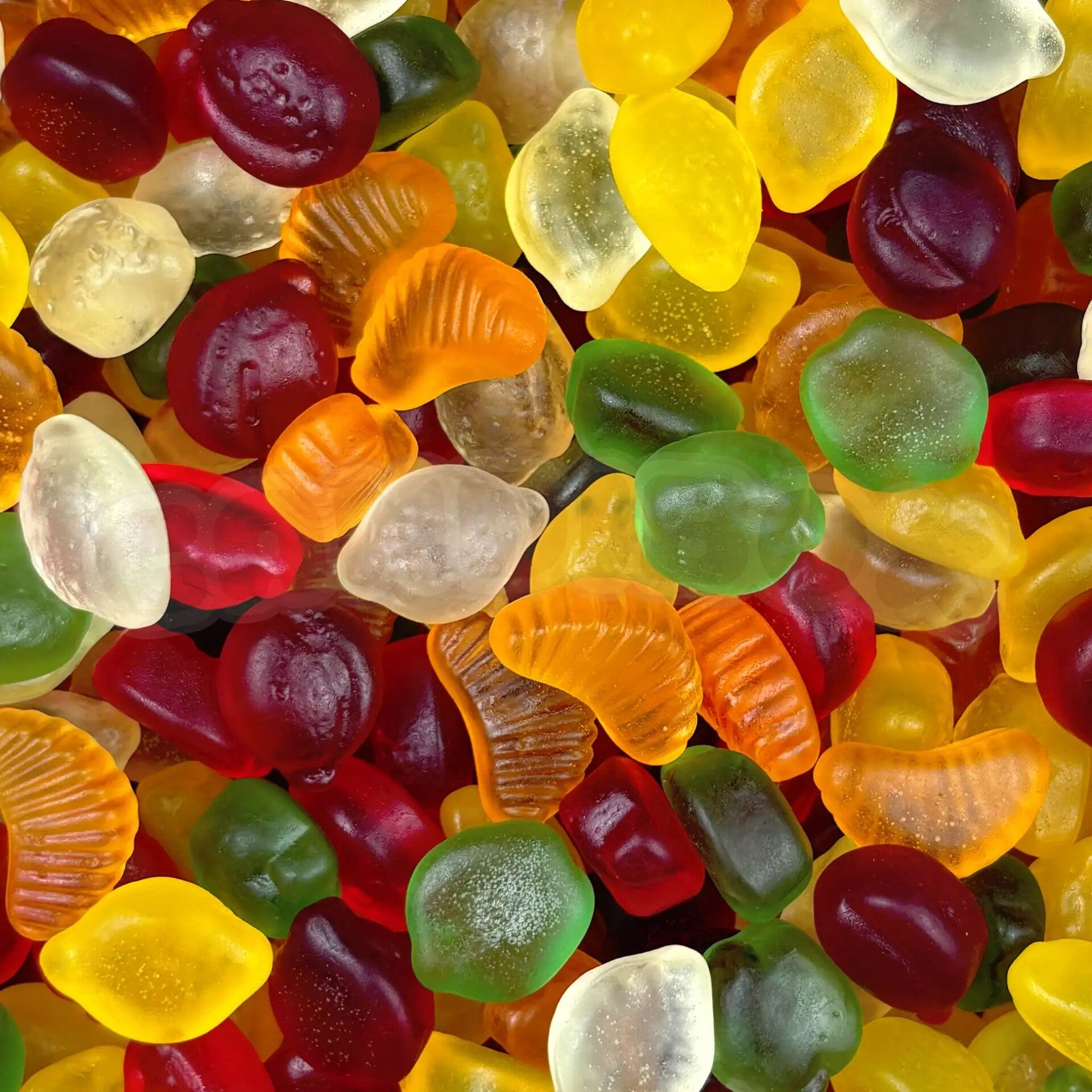 Un délicieux assortiment de bonbons gélifiés en forme de fruits, aux couleurs vives et aux saveurs fruitées, le tout sans sucre ajouté. Idéal pour les amateurs de douceurs plus légères !